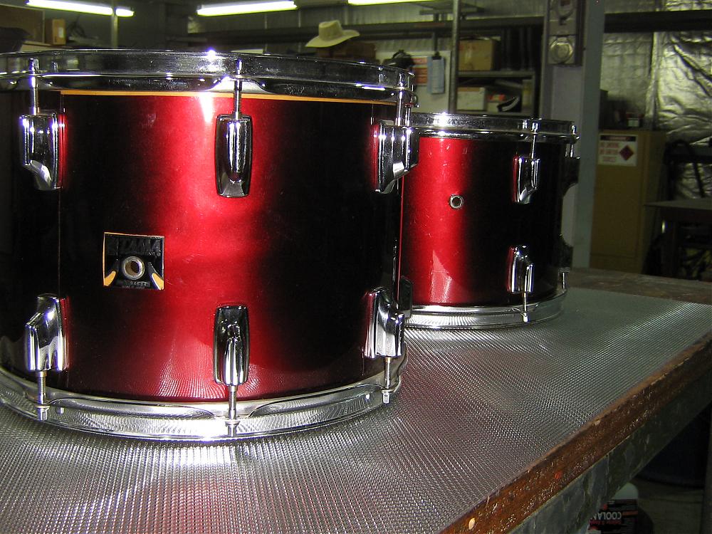 couldn't help myself and unwrapped the snare, no such luck just obvious that the original wrap has been removed. unwrapped the 13'' tom and as i thought a natural lacquered finish that has the usual tell tale of a players kit, but more preferred than the el cheapo silver back red wrap, i have taken this stuff off low end kits with view to paint the shells and i hate the stuff but to be fair to who ever did this rewrap theres not a lot of drum wrap available in australia. discovered a broken lug to boot, will check out others as i go. i am sure the shells will look fine after i have unwrapped and cleaned as all of my kits i class as players but will seriously consider wrapping the trak snare, maybe in a good quality chrome wrap.