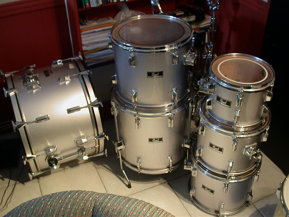 A stencil is exactly what it sounds like: many copies of the sam e design using similar or familiar hardware, and then "branding" them using the name chosen by the American Distributor. And this is where the Americans came into play with the names, as O'bop points out. Many of these old kits are identical copies of Slingerland hardware becuase as has been stated in other places, and below, the perception today is that Bud Slingerland was notoriously tight with money, hence the abscence of badges on many shells up until the 60s, when it became very difficult to the uninformed to tell the difference in a real Slingerland and a MIJ knockoff of the same kit. It's like, take my son's Majestics or better yet my recent finished project. Toi the untrained eye, they are very nice looking drums, and look like the American counterpart so much in size and parts that it could be easy to miss the fact they are not the real deal. Especially my kit, as they are very good stencils, with no badge. Before I layed the veneer on, and after the first round of prep work was began, they looked like a nice set of 3 ply Sling/Lud/Gretsch shells with WMP wrap. The hardware looked like it was the same, the hoops, every detail, top quality, to the untrained eye. The only way to find out was either to look at the badge, or look at the parts, of which only a very few have any indication of true origin. Made In Japan is stamped boldly on the cymbal arm mouting bracket. Other than that, to the untrained, they are Slingerland 22-16-13 and snare. The boys are similar to a blue spakle Ludwig Downbeat, or Hollywood, in the lovely sounding, sweet looking 20-12-14 configuration.