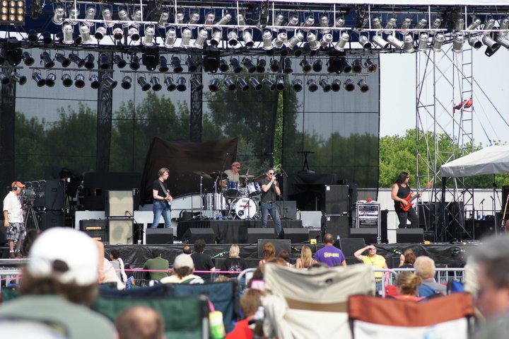 Jam productions had 3 semi trailors of gear, the largest stage I ever saw and the technology for this event was beyond anything I ever saw, including 2 huge jumbo trons on either side of the stage, so people sitting 2 football fields from the stage could see, they even had PA systems every 2-300 feet so way in the back the sound was clear. I met John Aldridge and got a nice picture with him, and we killed the set we played, it was like playing at wood stock for me, I got to chat one on one with Bryan Hitt, he introduced me to his wife, and got to stand up stage left while they played their set, after all these years, REO still sounds as good as they ever did. It was the greatest gig I ever played, all good times.