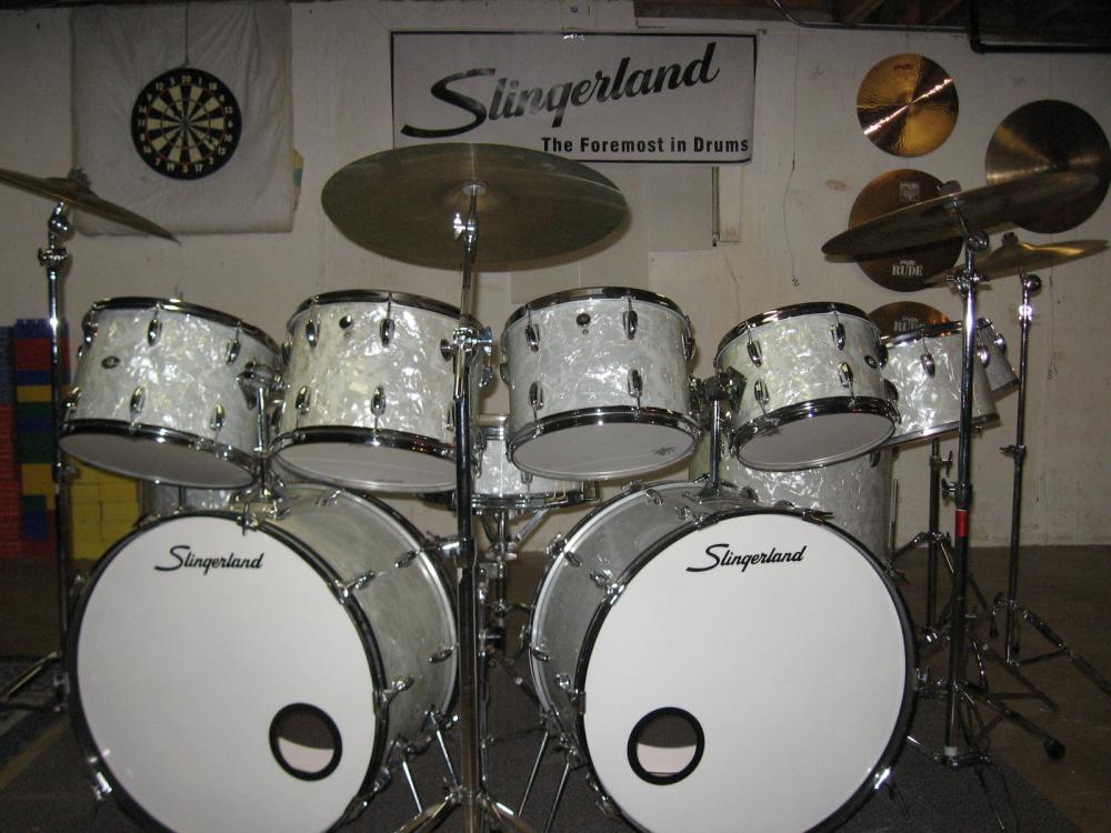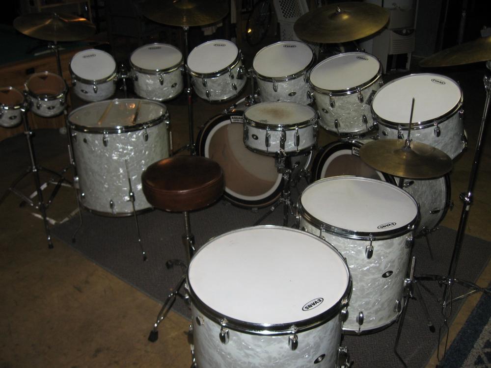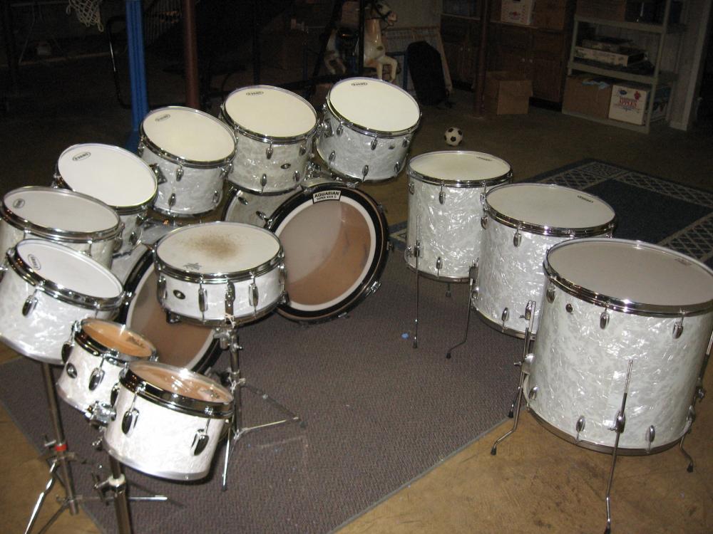 set 1. Most of which was bought NEW at the Slingerland Plant in Niles IL in 1972. That set was WMP 24" bass...13/14 up top...16/18 floor. About 12 years ago I ran into an estate sale where the party had all the sizes I didn't in same year and color. 6/8" concert toms, 10/12 concert toms