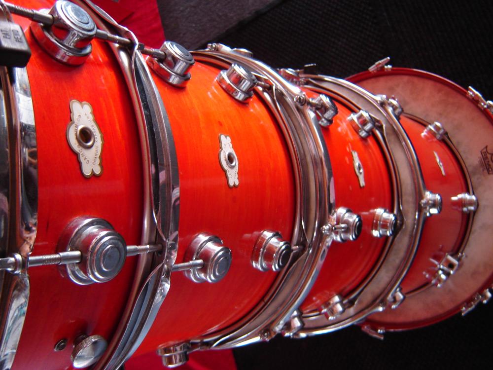 My Chanute kit 22/13/14/16 with 5X14 snare I bought used in 1976. Came with one of the original DW canister thrones shown in some of the pics. It was a beat up walnut stain when I got it and being in my 20s I decided to refinish it and install some hip Rogers memory lock tom hardware. Probably would rethink that today but had a different mindset back in those days.I recently cleaned it up and installed some new heads. It's road worn a bit around the edges but I just love it. This kit has served me so well through countless gigs over the years - priceless.Doug