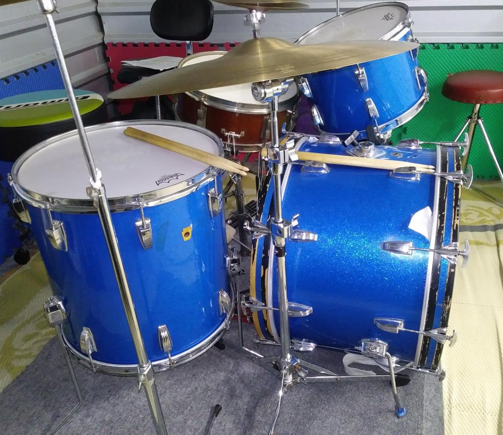 My newly aquired1968 kit and a pre-serial number Pioneer snare.