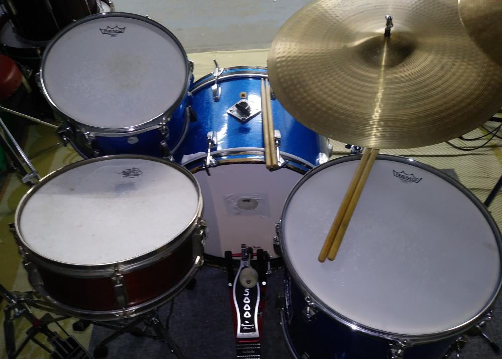 Me doing my best Bun E. Carlos, playing "I Want You To Want Me" or "Surrender." I ordered this "Pro Beat" kit new in 1976 and substituted a 6 1/2" Super Sensitive snare. Have since changed heads and cymbals, otherwise it remains original. I left the 18" floor tom and splash cymbal at home; stage way too small....and yeah, I play leftie.
