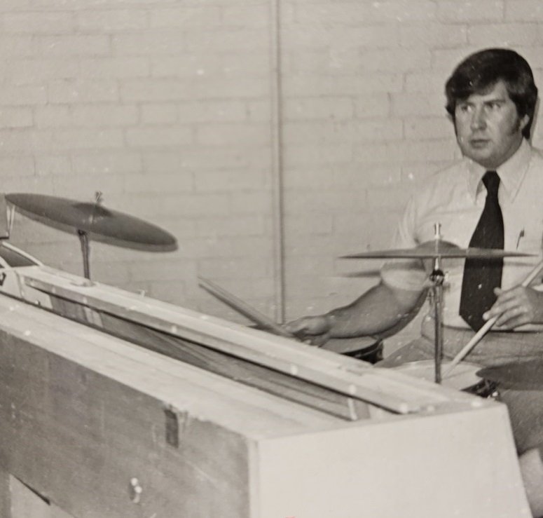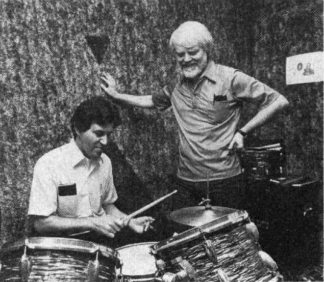 In the background of the '67 photo showing him on his Slingerland Modern Jazz outfit (new then and now vintage), is a play bill from his days in the 50's heading up a small band that played the Newburyport area.