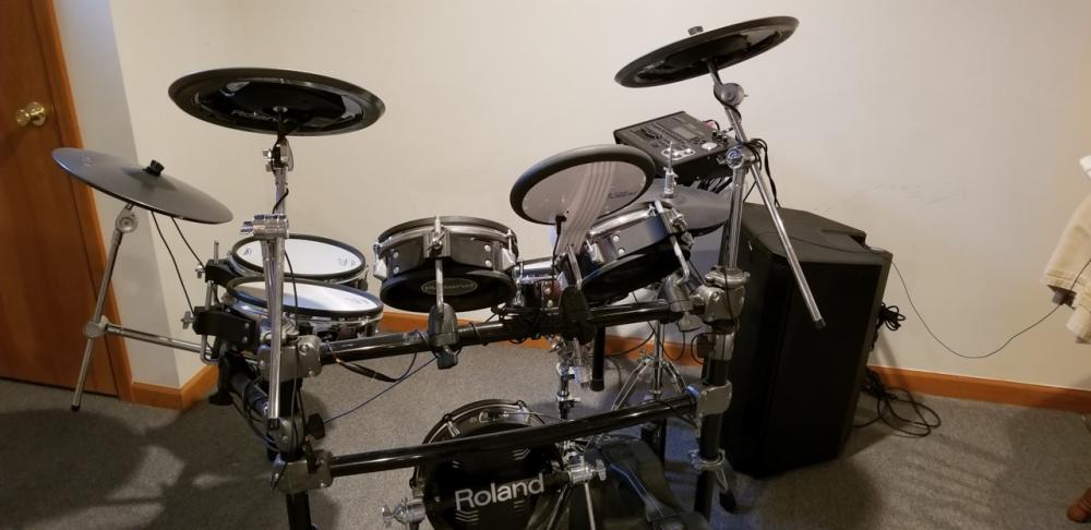 I am contemplating a trade involving (my) Roland electronic kit and a Rogers blue onyx wrap kit (13/14/18/24).