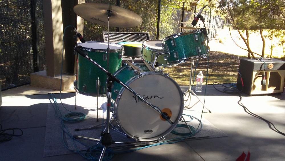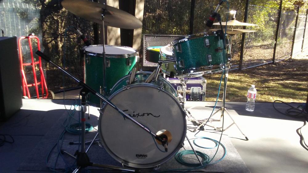 While I was setting up, one of the young sound guys was watching me and I started telling him about the kit. I mentioned how it had faded in some places, he says, just remove the wrap and paint them. I tried to explain to him that you don't remove a wrap from a vintage kit unless it's totally shot and how it would greatly de-value the kit. He had a puzzled look on his face and didn't seem to grasp what I was saying.DOH
