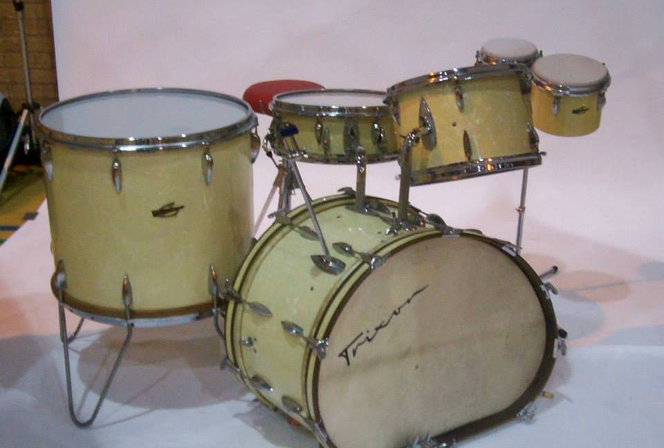 Hi Grantro...forgot about this bad boy in white marine pearl with the Lionel Hampton floor tom, matching snare with mount off the bass drum,and bongos...this one has the larger sized 26"x18 3/4 bass drum which sounds awesome live...so thats now 5 in total for the family now buddy