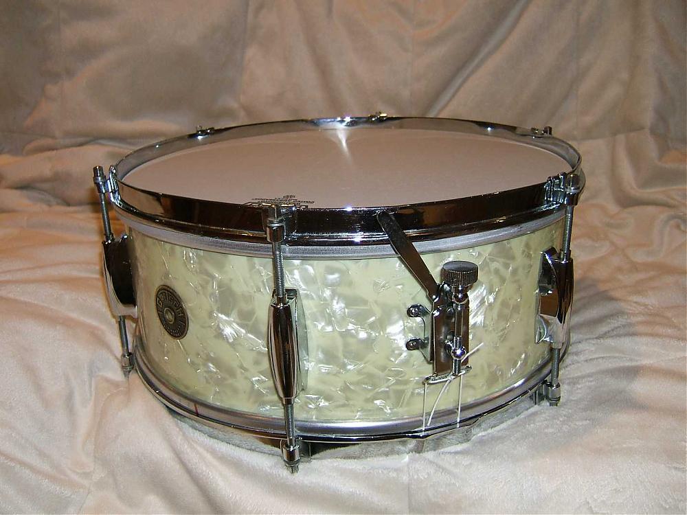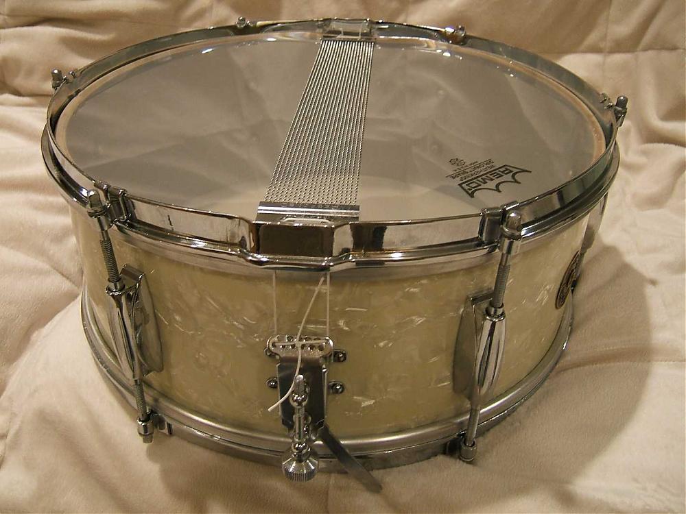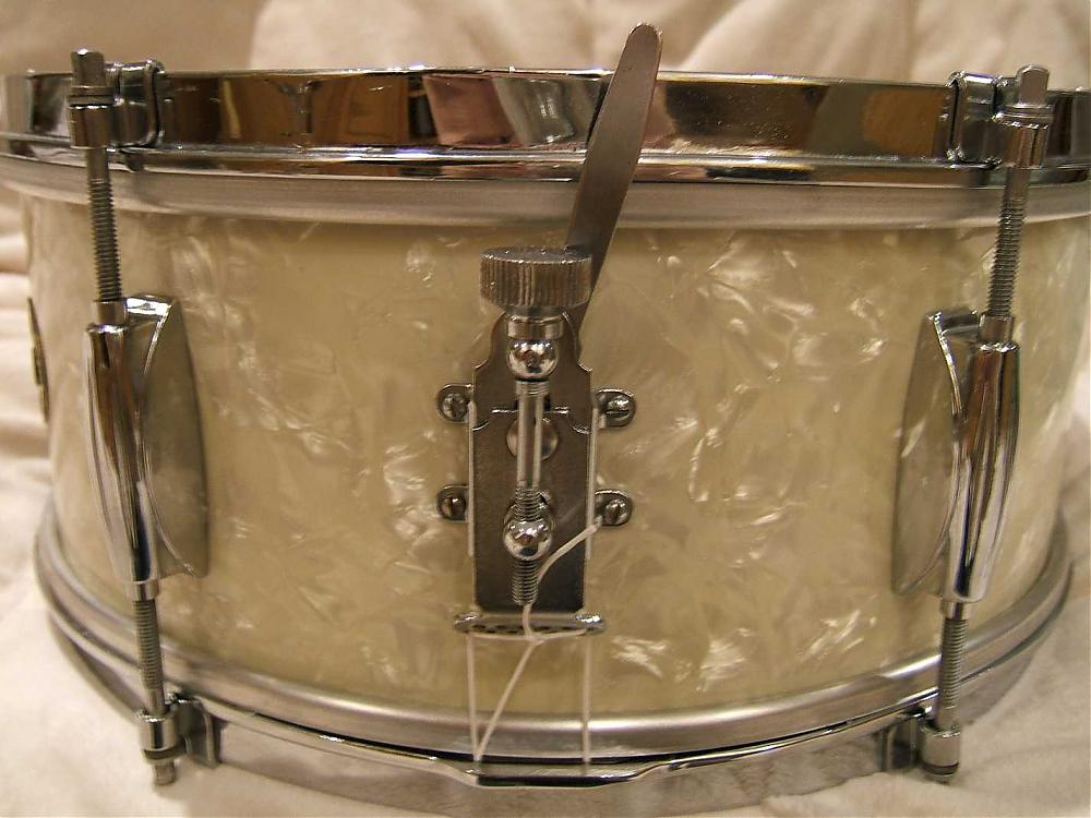 The only thing NOT original on this drum are the heads, the strings holding the snare, and one of the bolts on the inside of the drum holding the snare adjustment lever. The snare itself and all other hardware is original (to the best of my knowledge, anyway).