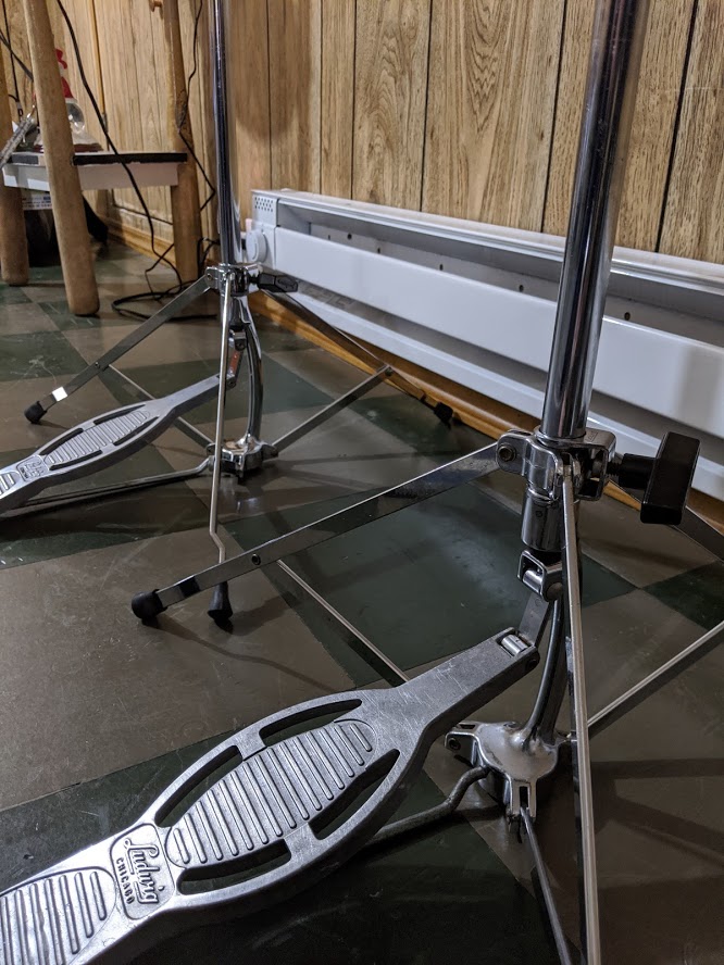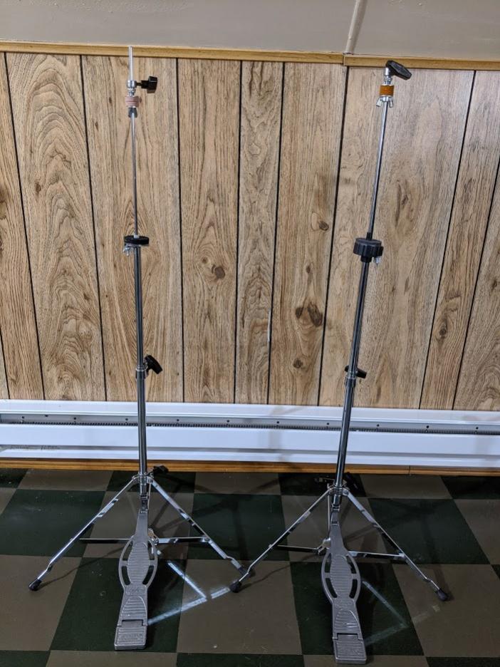 The one on the left is all original. The one on the right had a broken bottom cymbal seat and it was replaced with a new Pearl seat.
