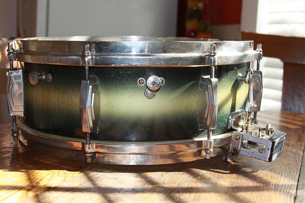 i aquired yesterday three vintage snares from a retiring professor, one of them is a ludwig from before ww2. from my research the only drum that i've seen that looks anything like this is the silver anniversary edition. now saying that i don't claim it is one, though i do think this is a 1936 edition with some special order duco on it. inside the shell is stamped 3612 in big blue ink. any help is appriciated.