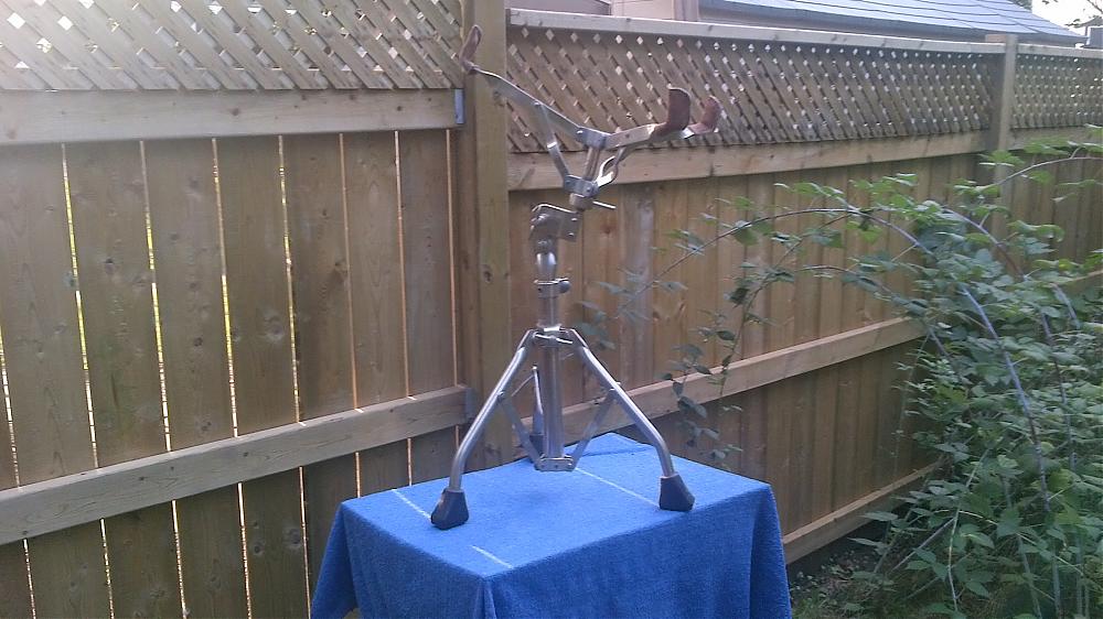 Here is the very nice stand that came with this drum. It has stitched suede leather finger caps