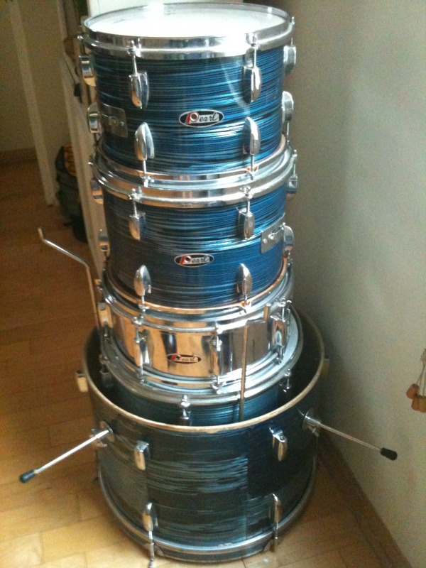 That is a nice set! One important thing, is the other hoop for the bass drum missing, or just not in the pic? Finding a matching hoop would be a nightmare and that would be the one thing really bringing down the value of this set. It looks great, the wrap looks like it's in very good condition, but off-hand, I'd probably put the value of the set somewhere between $250-300. If the other hoop for the bass drum and tension rods are included as well, maybe a bit more.