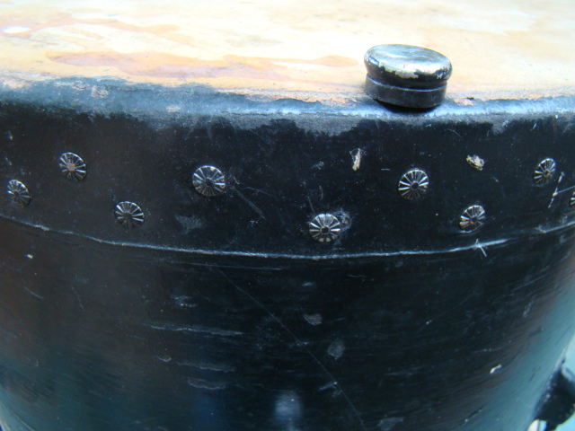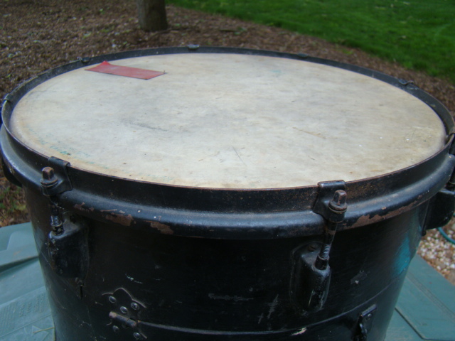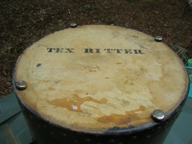 Hello, and thanks in advance for your input. I picked up this vintage drum today, and was wondering if anyone had ever seen one like it. It belonged to Tex Ritter and has 2 "return to" addresses on it. One is his Van Nuys ranch address from the 40's, and the other is his Toluca Lake address from the 50's and later. It is hinged and opens up. It has a skin tacked on the bottom - you can see the tacks in the side. It has a pretty good sound to it. I don't know a lot about drums, so I would appreciate your help on this one. It measures 16" across the top, and is approx. 11" tall. An original price is written inside the top head of $8.50 (don't know if this was the drum or head price). Thanks again. David