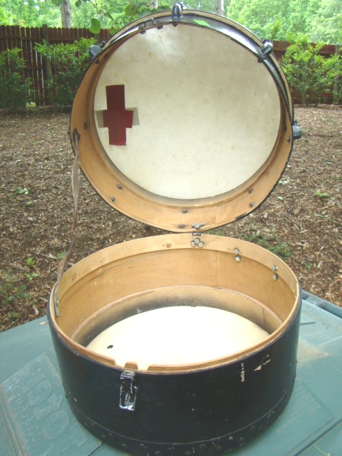 The response about the suitcase drum by mcjnic makes sense. There is the handle for carrying. And I was thinking the same - about beating the drum up from the inside. The inside on this one is pretty clean with no damage from things banging around. I did include another photo with the inside showing better. It has a leather strap to limit how far it opens.Thanks again for your responses.