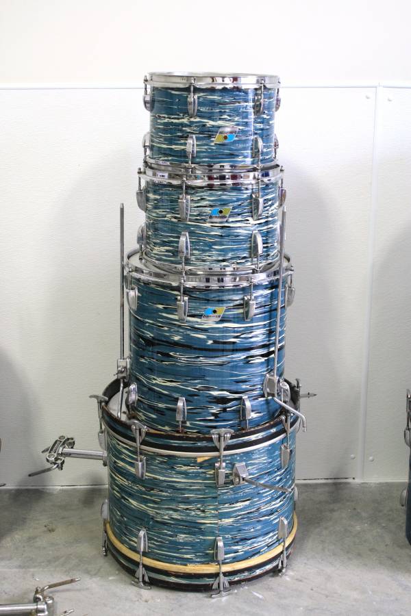 I spent the afternoon at a fun local auction just down the road from the football Hall of Fame in Canton OH. Over 200 lots, all related to music. Instruments, records, stereo stuff, DJ stuff etc. All items picked from estates by the auctioneer. There were people in the crowd from as far away as Reno NV, and some phone bidders from around the US. These are the vintage drums of note that were sold and what my feeble memory recalls for the gavel prices.