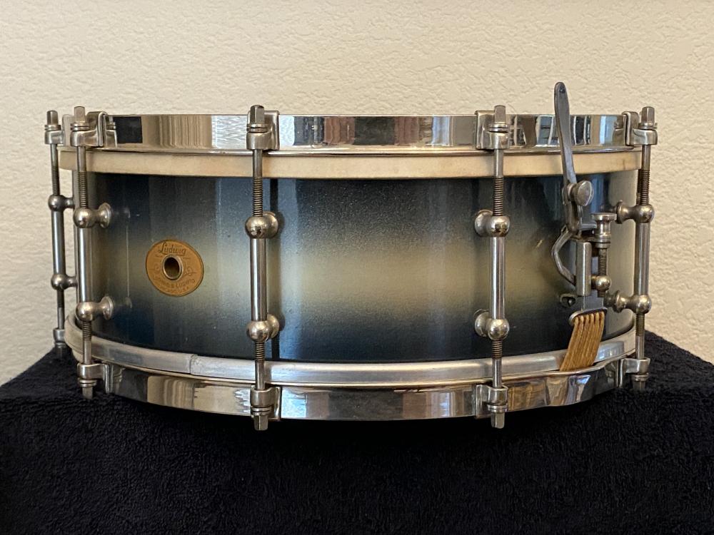 DuCo (Dupont Company) finishes were the less expensive option compared to the pearl/pyralin finishes but were way more prone to cracking and chipping as it was simply lacquer applied to the shell. One would think that the less expensive drums would have the DuCo finishes but these four snares are perfect examples of higher end (and somewhat rare) drums whose owners chose the less expensive shell finish option. In my opinion this is like putting Sears tires on a Ferrariā¦but I still will not pass up a rare snare drum with an inexpensive finish.