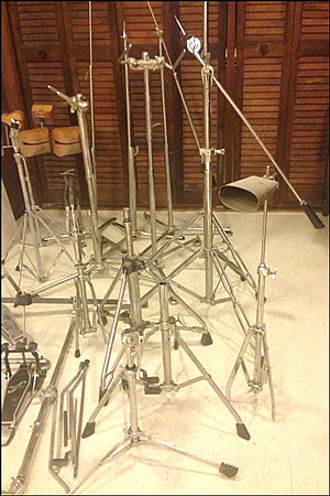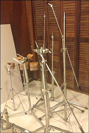 Certainly have my work 'cut out for me' this month! The owner in effect paid me to take them away due to lack of room for them. Now it's me with no room! I must be a glutton for punishment! What I thought would be a good week's work is looking like a long, long project. I have no idea of the Model no., but the snare, a Model 2000 aluminum shell, is stamped 1972 inslde with ink. Most of the hardware stands are Premier, and all the cymbals are vintage Zildjians with the two exceptions being one pre-serial 20" Paiste 602 Ride and one ancient Zyn splash. So much stuff in one haul! There's even a 70's Ludwig set of wooden temple blocks with stand and a set of Roto-toms! HELP! Violin