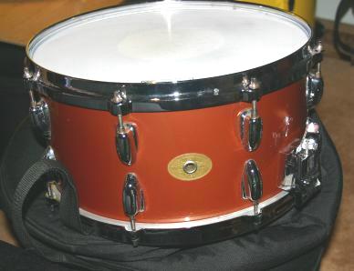 non-Slingerland strainer and hoops, the shell has been painted in and out. I can see patched strainer holes, but no evidence of different lug holes (if I'm not mistaken, a similar RK had single, centered lugs).
