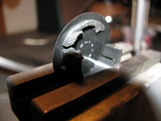 That lil saw blade is bad a$$. I havent hurt myself with it yet either lol. The plug fit perfectly. The edges stick out a little bit. I am thinking about getting the heat gun out and try to mold the excess pertruding plastic around that shaft. Now I can get back to me kids drums. TGIF!