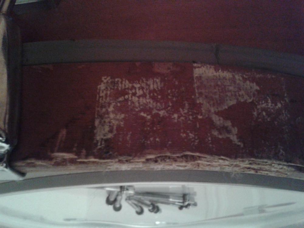 For a solid repair, i bought some maple veneer at the local Home Depot (unfortunately they didn't have birch) and wood filler to cover some of the damaged spots and even out the slight ripples caused by the water damage and glue repair.. Sanded lightly with 180 grit and then steel wool for finishing the stain. I restained with a mixture of two different stains to achieve a similar factory finish (by trial and error, of course ) and even though i'm not a pro like JC Cabinets, :D,