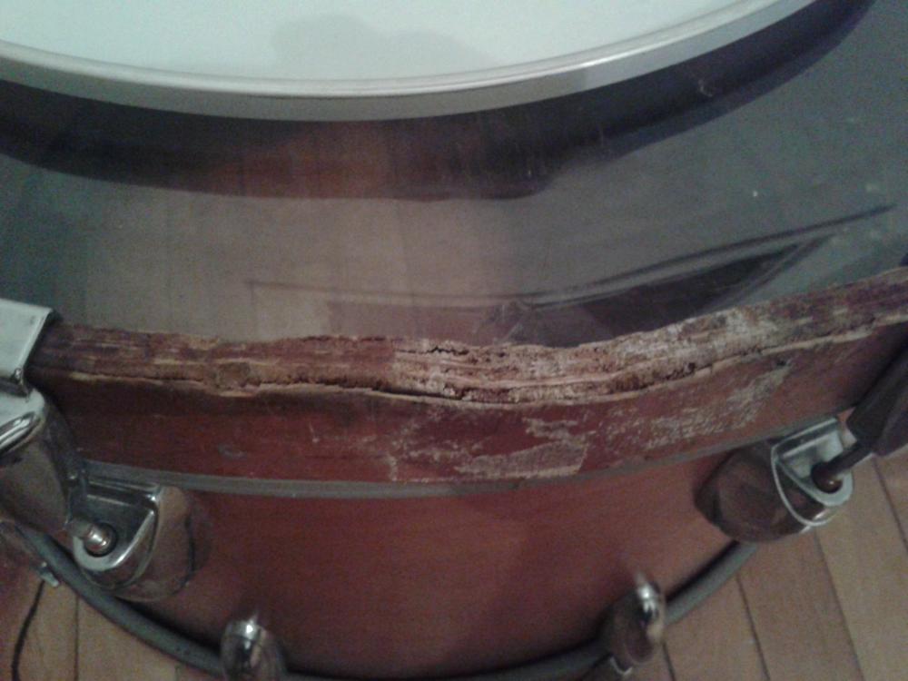 So here it is folks.. Finally finished the restoration job on my vintage Yamaha 8000 bass drum hoop which i believed was unsalvageable..Brought it to a Luthier of violins and classical stringed instruments to have the plies glued together properly (i don't have the equipment to do so) and the results were great. Glued properly by professionals, and then aesthetically transformed by me. A few minor errors along the way, but nothing that some advice given to me by fellow forum members couldn't fix..