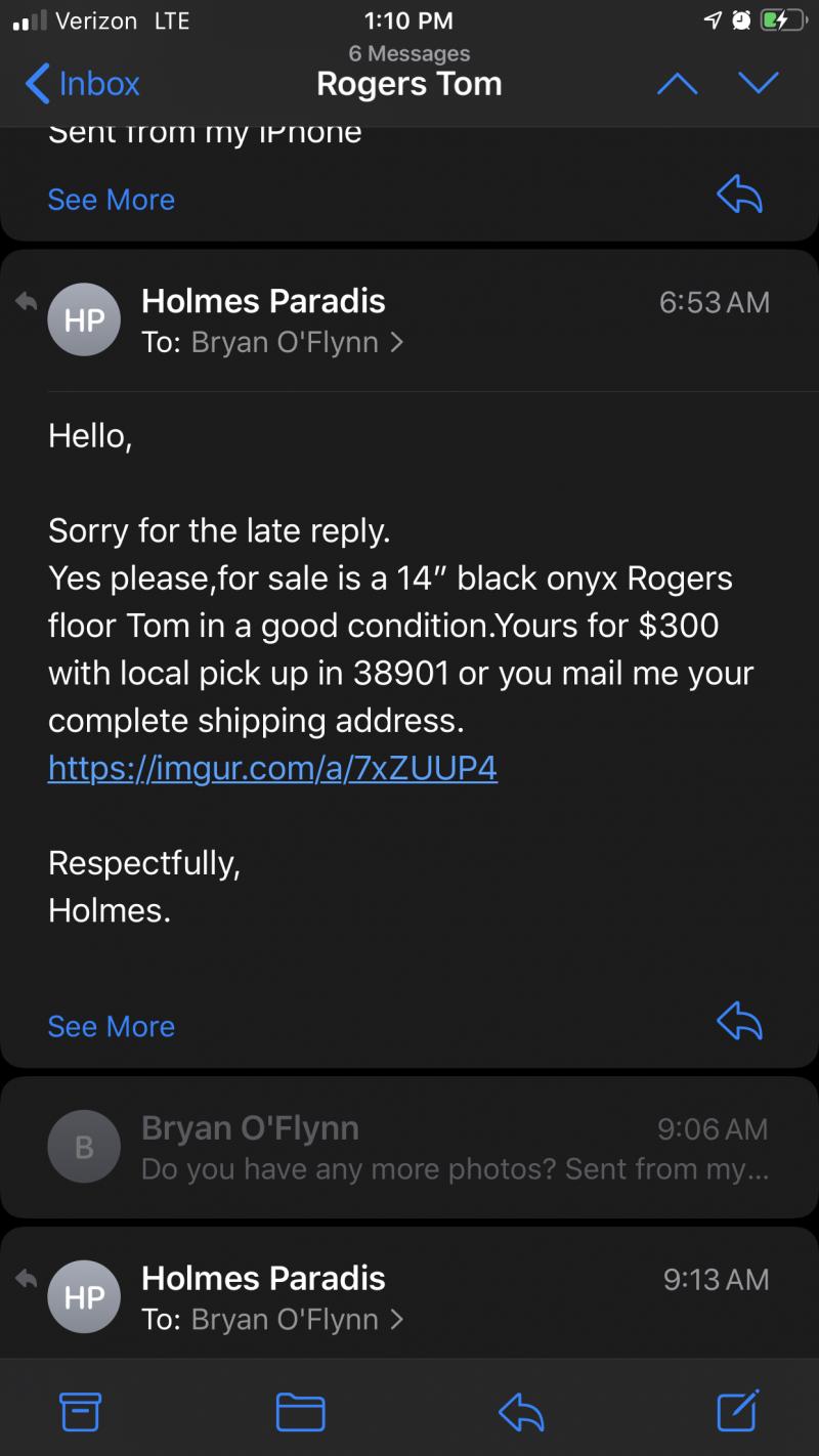 This was a first for me, so I wanted to share it with everyone here. Someone messaged me on here giving me someone’s email address saying, “ask him because he was trying to move a 14” Rogers in black onyx”. So I emailed him and figured out it was all BS by asking the Memphis question. Anyways, just thought I’d share.