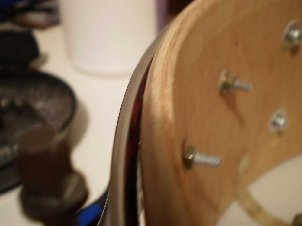 Here's a pic of the edge and strainer. I don't know if it's the original strainer. Obviously something else was there. The key in the bag was not L-shaped. It's a socket style key for the tom mount.