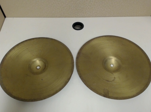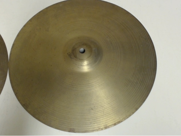 Hi, I bought some old looking Hi Hats. They were described as Vintage Hi Hats with no maker's marks. What is your guess on these cymbals? Sorry the images aren't the best, but they appear to have an unlathed bell. The lathing patern on these cymbals doesn't look like Avedis Zildjian, but also doesn't look like cheap cymbals. Top Hi Hat appears to have a slightly warped edge, which, from my experience would suggest brass MIJ cymbals, but there is no JAPAN stamp. They look like they have been well used with the top Hi Hat being darker / dirtier than the bottom one.