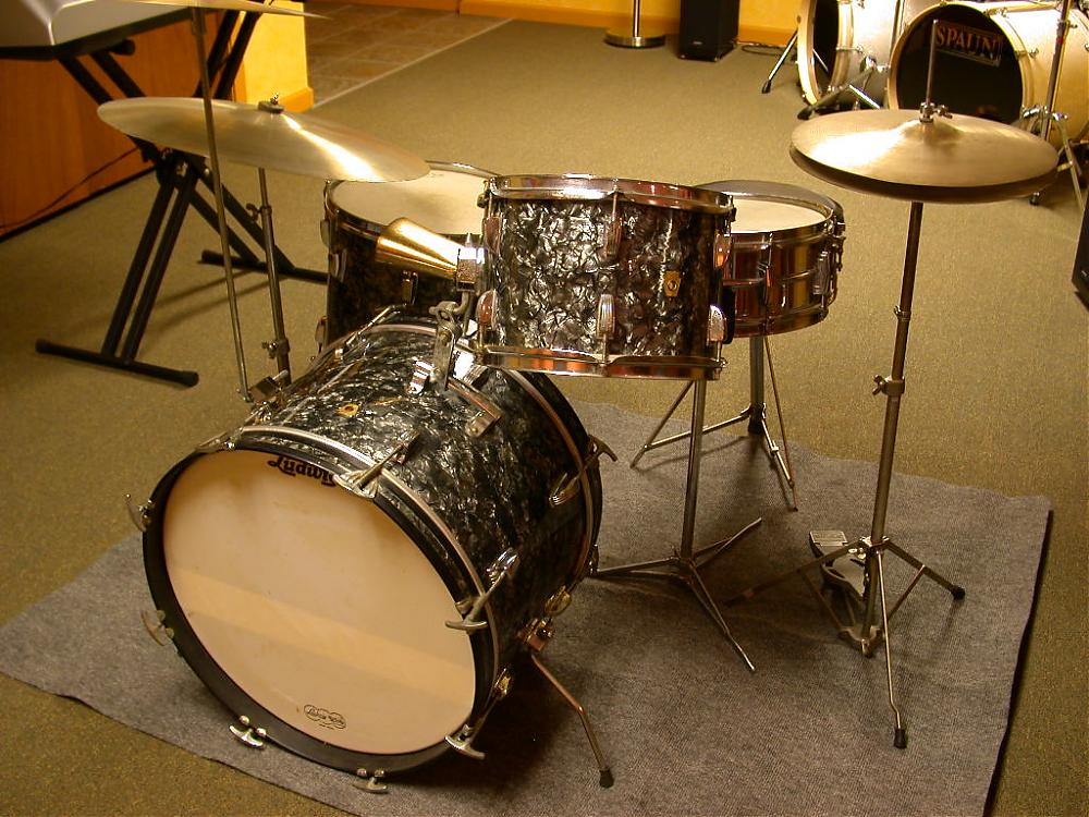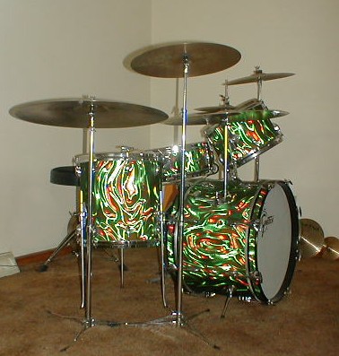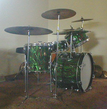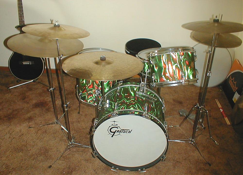 OK, I'll play. My first vintage kit a few years ago. Gretsch RB kit with all original hardware and K Istanbul cymbals. $300.00 from the original owner, no missing parts or extra holes. The kit received a full clean up, new heads and the bass drum hoops painted. This was a once in a lifetime score.