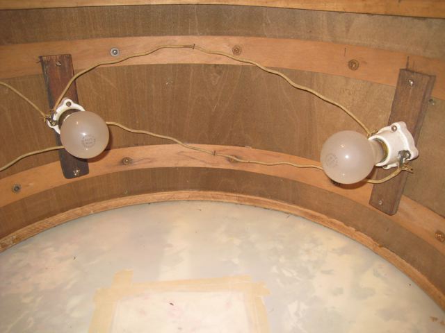 I noticed that the grain of the wood is parallel with the tube lugs, rather than going "around" the drum that I am accustomed to. Also there are four lights inside. I suppose those could have added after the drum was made. I hadn't seen the style of claws on the t-rods before also.