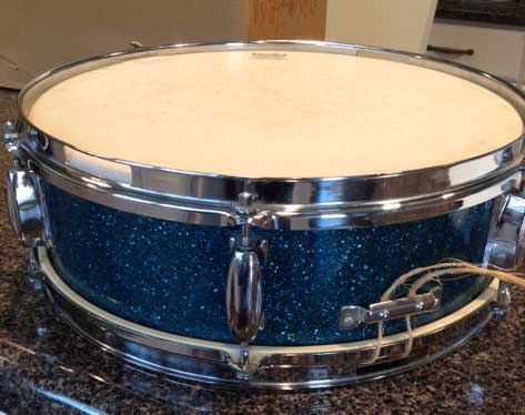 This one is a Slingerland knock-off. One of the experts here can tell you who manufactured it. It is a very nice example by the way. There is very little monetary value in these as they were cheap to begin with. Having said that, a lot of drummers have a soft spot for these drums as they started on them in the 60's through the 80's. Also, while the vertical grained Luan shells are generally pretty poor in quality, many here say that they have hardened over time as they dried out and actually sound pretty good now. There is always someone looking for an individual drum to fill out a restored set. Probably the most common colors were blue sparkle and red sparkle so finding someone who might want that particular snare is pretty high. There are also drummers who keep one or two of these types of snares in their arsenal as they are generally not as loud as a higher quality snare so they can be helpful in small venue situations where volume is an issue. Good luck to you.