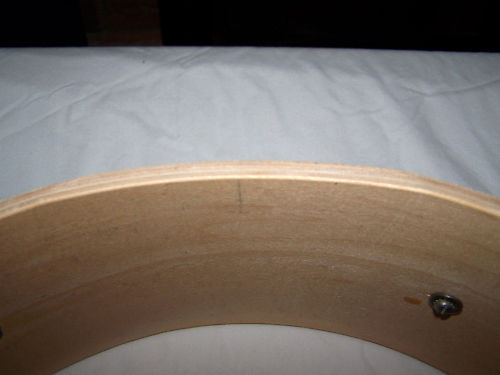 I'm not so much interested in it for its collector value (to the extent it has any) as for its shell. 14" x 4 13/16" and under 5mm thick with no re-rings. 5- or 6-ply -- a little hard to tell with the paint layer. Still just about perfectly round. Interior is absolutely pristine; exterior is just a little faded -- white to yellow-ish. This was all pretty appealing to me.