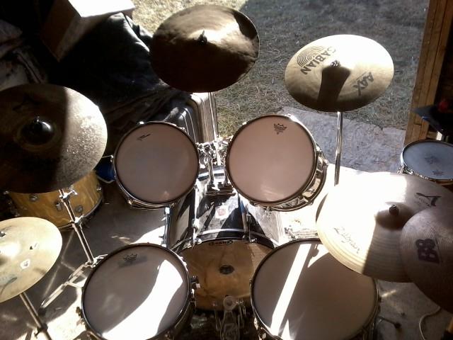 not really sure what happened to it, but i think it got the shat beat out of it, lol. that is the way it was when i got it. a friend gave it to me a while back. not even sure what kind it is or where it even came from. just thru it up there for a "sound effect" cymbal, really don't use it much but it does sound kinda cool when i do hit it. my favorite cymbal is the one to the left of it. it is a zildjian 16" A custom fast crash, love it.