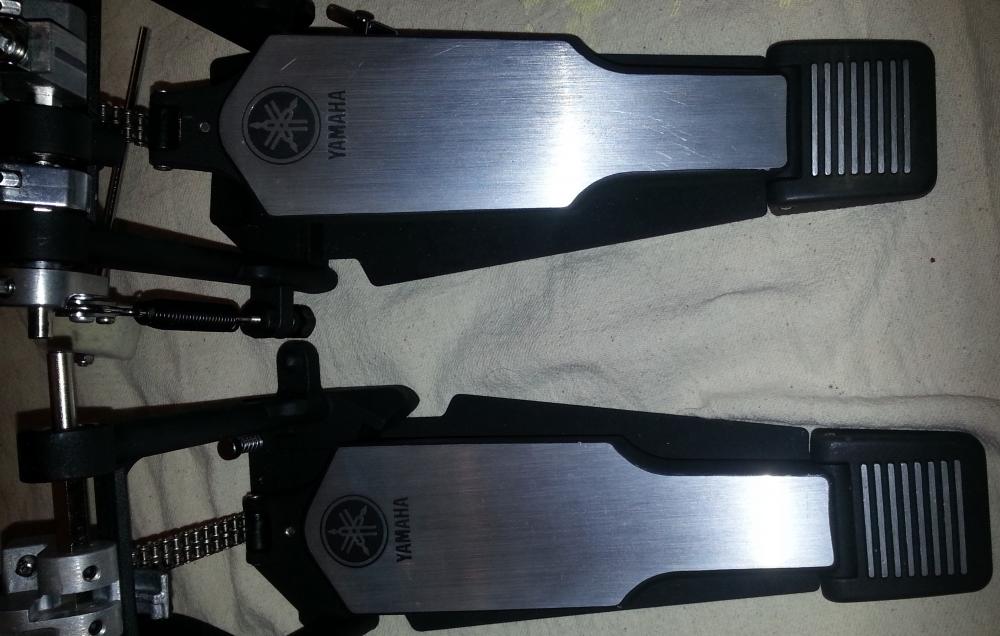 Hi everyone....Just bought these yamaha pedals as you see them for £25 in a local charity shop. Ive tried them out and all is well. Not many marks on them. Dont know anything about Yamaha pedals are these a budget set. There is a bag un opened with some black straps in. The bar to connect them both seems fine to me. I thought that the VDF members will know about these. Thx....sean...PS im a size 8 and crikey the footplates are long. Im surprised at how easy the double pedals are to play being a single pedal guy. I am fast on a single. Could be a new way for my playing to go. Ill have to try metal hahahahaha.