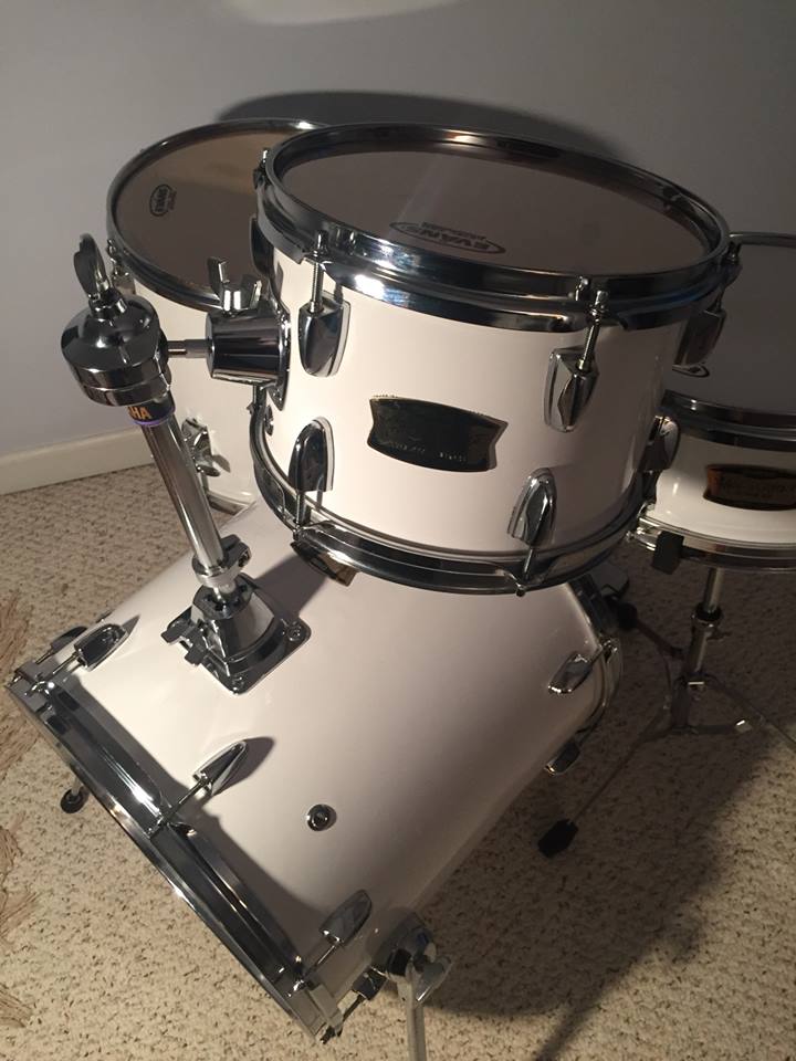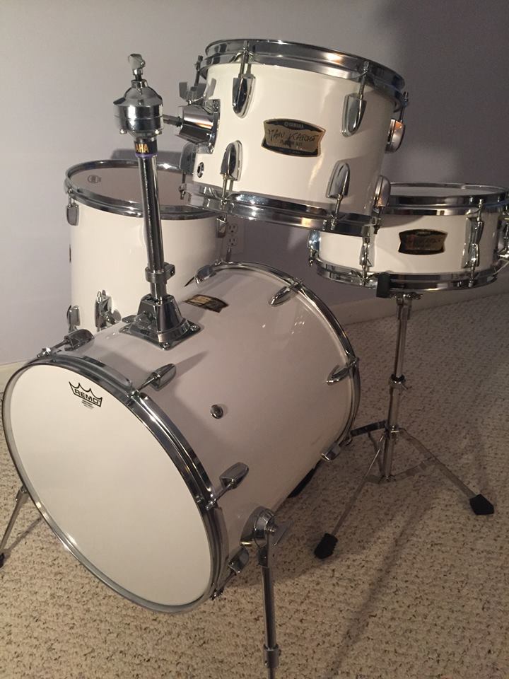 Custom Manu Katche HipGig kit for sale. These are the legendary kits that were discontinued from Yamaha back in 2000. Everything in the picture you will receive in the sale. I re-wrapped the kit in a white gloss color in my workshop and added new custom air grommets on all the shells. Toms have new Evans Batter & Resonant heads. Evans G2 on the top and G1 on the bottoms. All shells are 100% Mahogany and in great condition. This kit sounds fabulous and is a great gig kit for all types of venues.