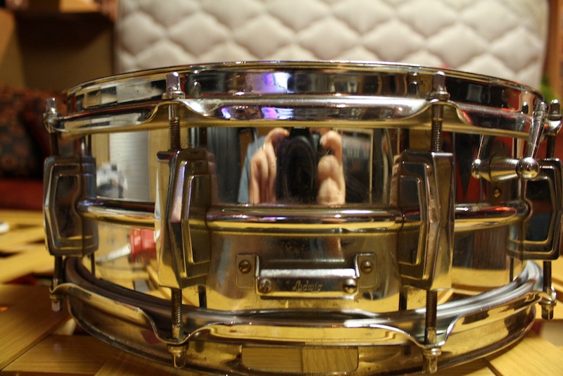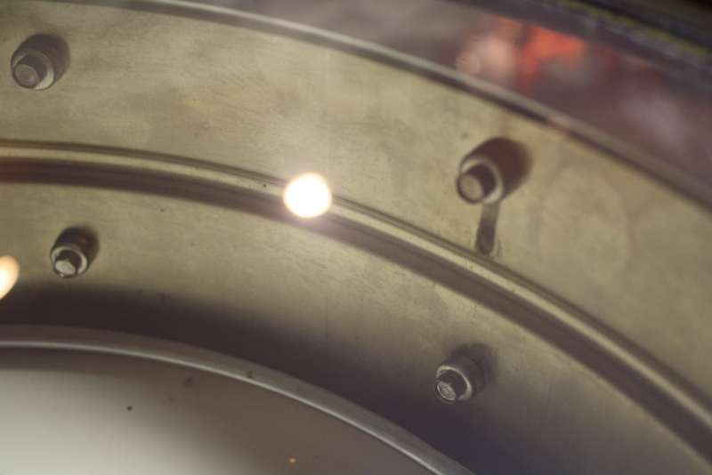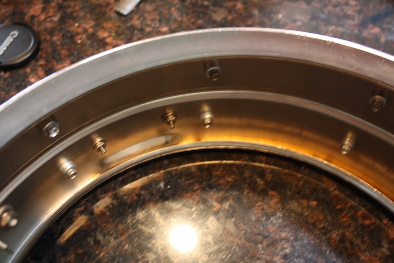Wow this is weird. Started stripping this baby down and underneath the bottom rolled edge of the drum there is a bright brass color showing through.. as if it was never plated. Left side of the crimp looks normal and right of the crimp looks like bare brass. Looks almost like someone was a little tipsy at the Ludwig plant and missed plating a side.