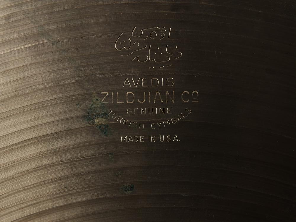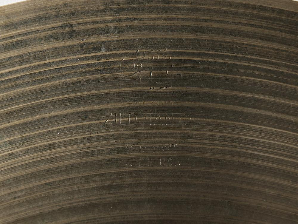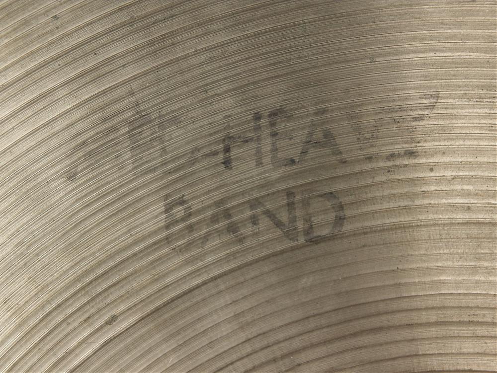There is also a stamp that says "med heavy band" on the bottom cymbal. This cymbal weighs in at 1226 grams, which is almost twice as heavy as the top (659 grams). I've read that Zildjian didn't start using stamps until the late 70's?.