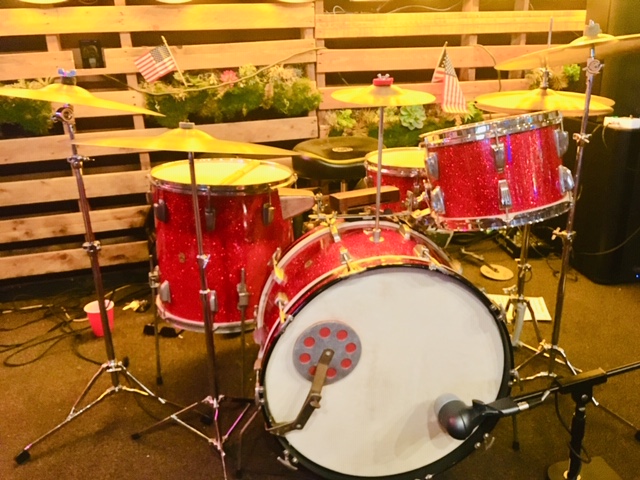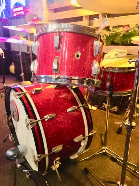 This kit is special. And man they sounded like a dream. I could not get over how good the old heads stayed in tune. Now granted I was in a big AC cooled dance hall so no real exposure to the heat for the calf heads & they tuned up so nice. I was truly geeking out at this gig and my happiness flowed into my playing, keeping the folks dancing and making for a very memorable day.
