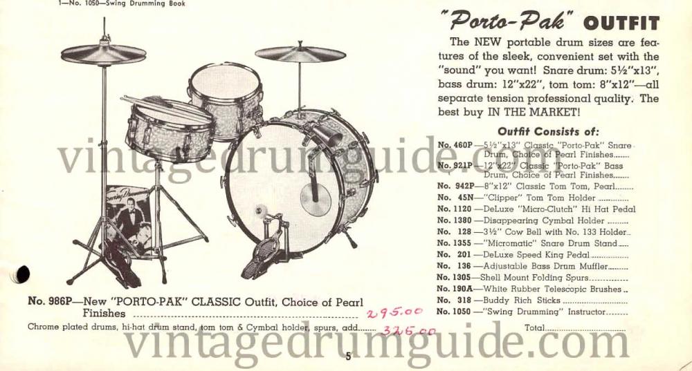 Yes! The 12x22 is quite amazing! It's got a lot of depth for NOT having a lot of depth! As for yours, my kit has the 5.5x13 Porto Pak snare hence the outfit name. I only saw the NYer in the 59 catalog with the metal 400 included. I couldn't find any earlier catalog pics.