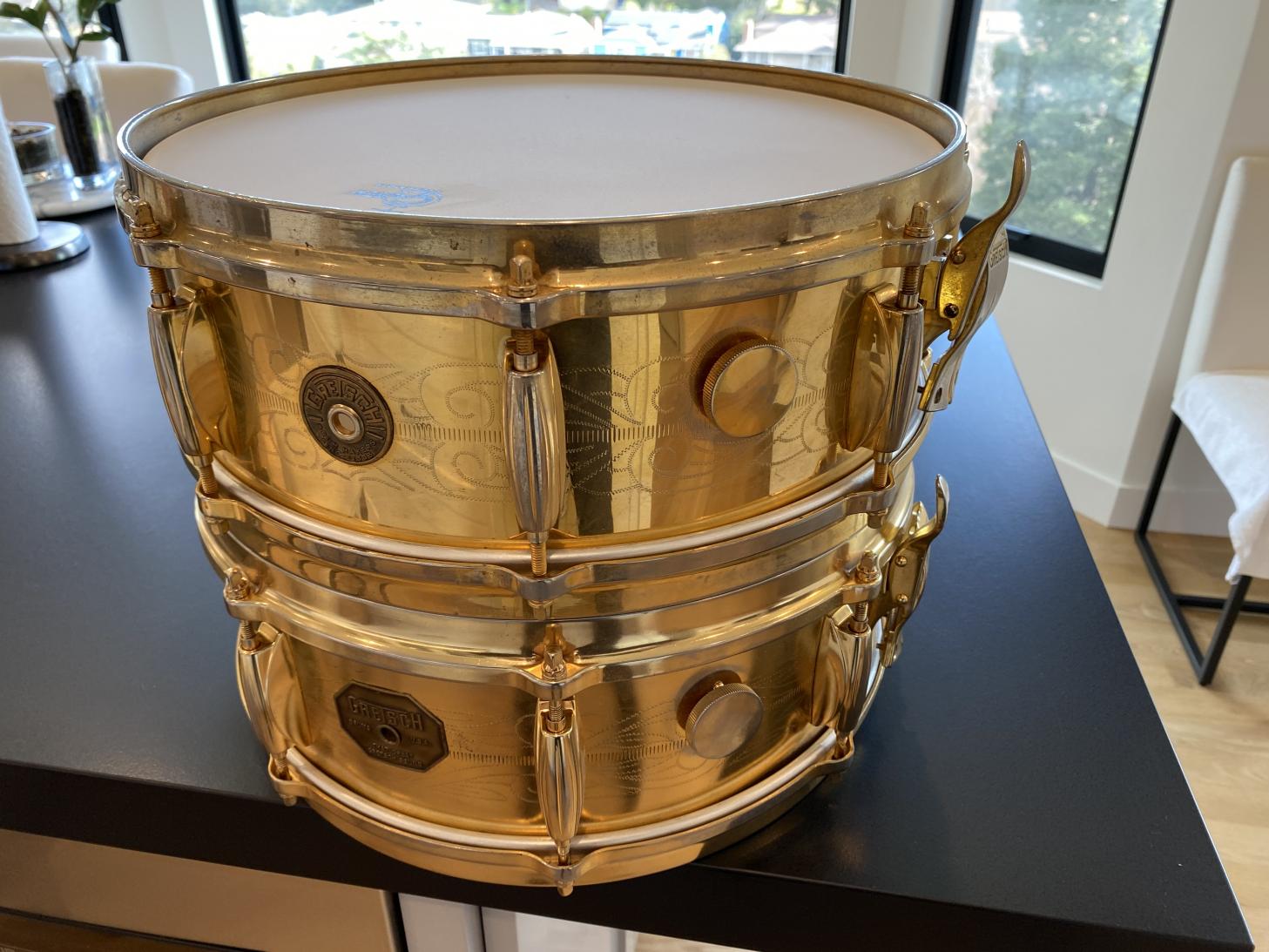 Here are a few more that I never did an article on. I am not a Gretsch collector and rarely dabble into the 1960s-70s but I love gold plated snare drums.