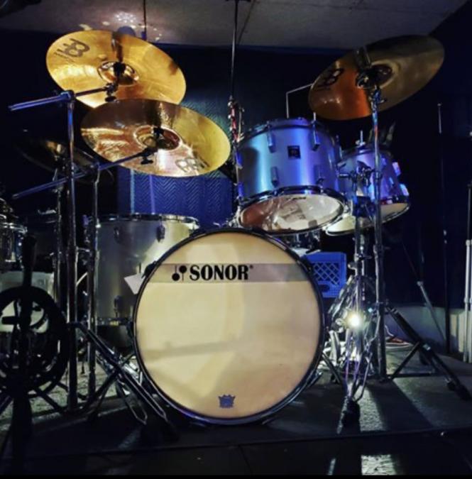 13/14/18 and 22” kick, plus D505 ferromanganese 5.75x14 steel snare. One owner, never gigged. This is after I rebuilt her. I added stainless steel washers to all the lugs (they needed it). I also added S-Hoops to the snare (I love them! Such awesome cross stick effects!) and I used all Evans heads: G2 batters, G1 resonants, EQ4 kick batter. They just sing. SO musical!