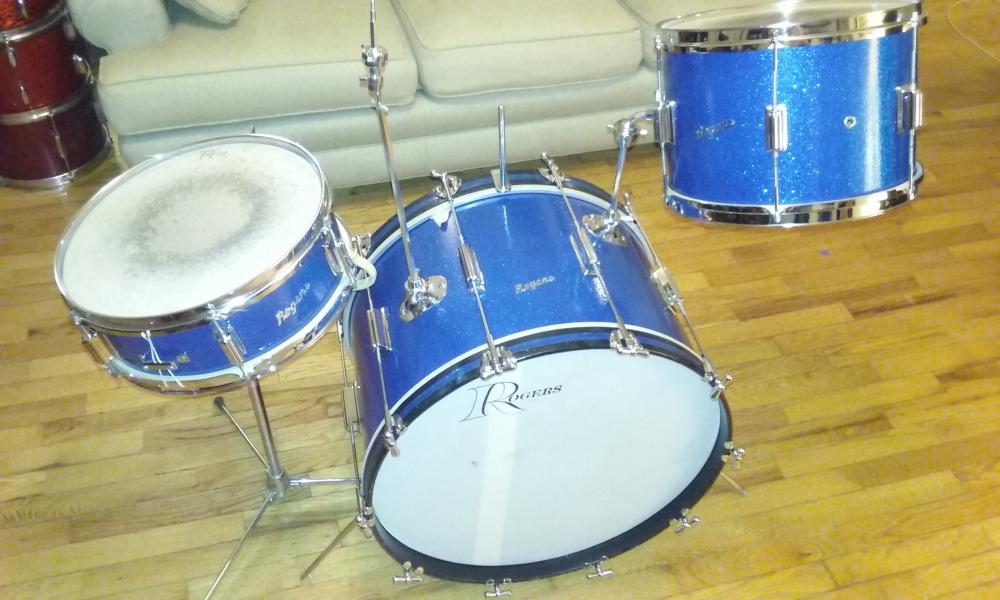 Offering this 1965 Blue Sparkle Pearl 3pc kit. This is likely the "Comet" as seen in the 1964 catalog.