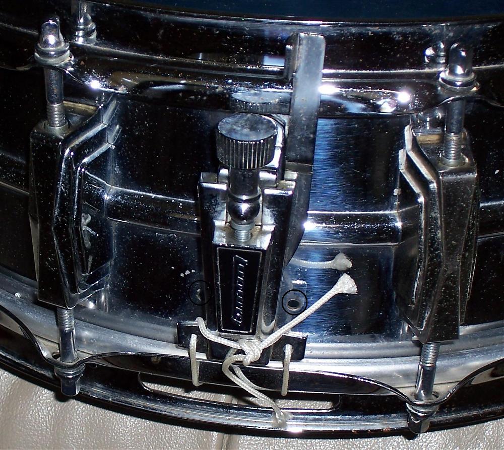 What I've noticed, but haven't seen addressed anywhere, are a few holes in the shell of my drum -- one directly above the snare butt (see pic) and one on each side of the lower portion of the P-85 (see pic). Are these factory-drilled? If so, what purpose did they serve?