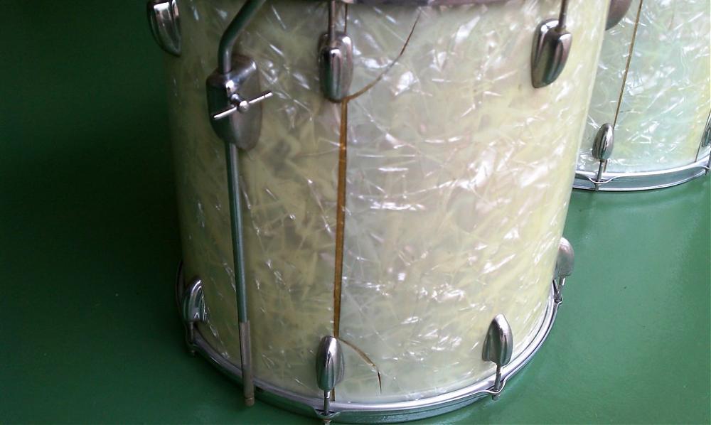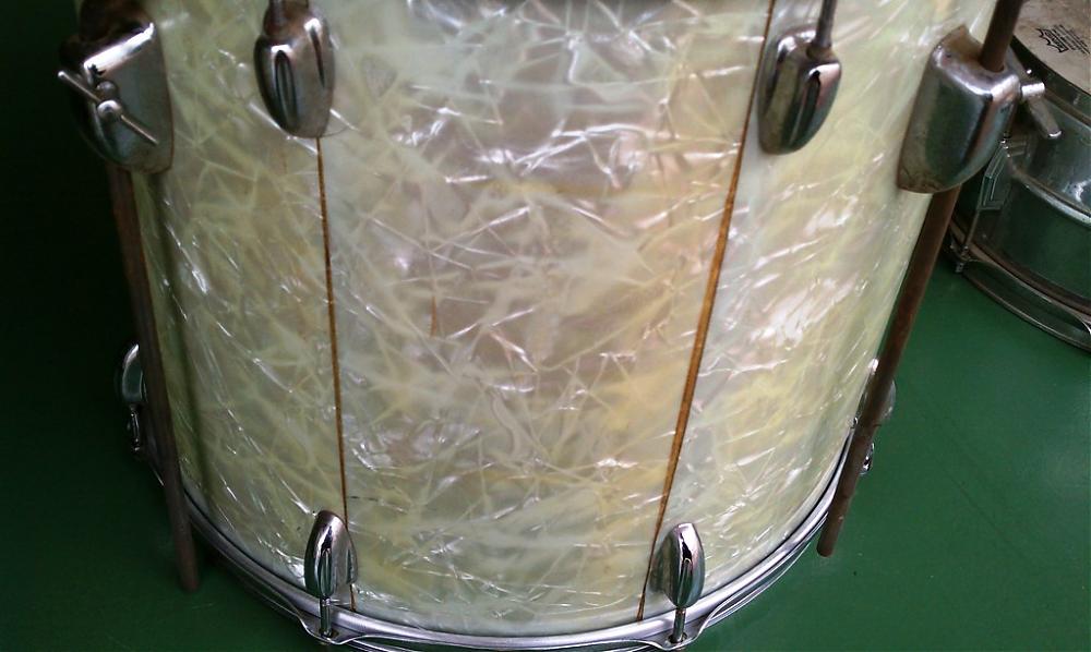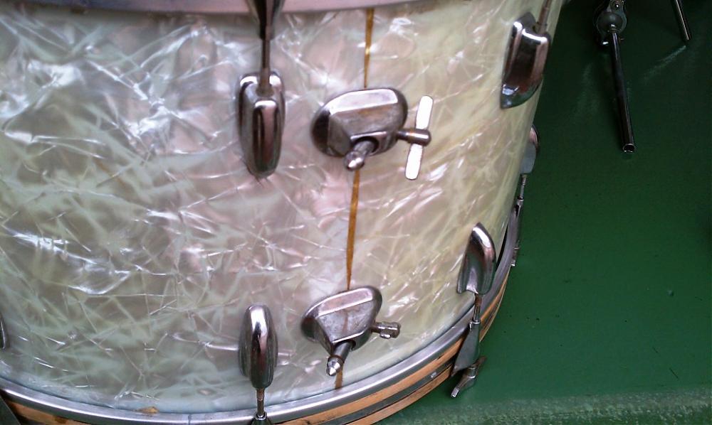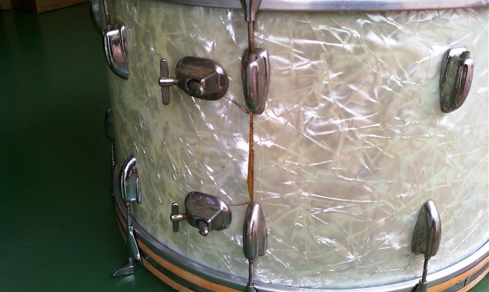 The only Slingerland drums I have are in my Buddy Rich snare drum collection, and out of the four models represented during his tenure with Slingerland.. ( 1968 to 1976 ) .. only two are from the early 70's: My 1970 4X14 BR in WMP, and my 1974 #190 5X14 BR/TDR in WMP, and the wrap is perfect on both of them. No shrink.. cracks.. glue in the seams.. etc. The other WMP BR model is from 1968, the #143 Buddy Rich Artist, and those wraps/glue rarely shrunk or failed that I have ever experienced. That's why I was so surprised to see that the wrap on your drums had let go so badly, and/or cracked. That's also why I thought they had been re-wrapped too. So!...