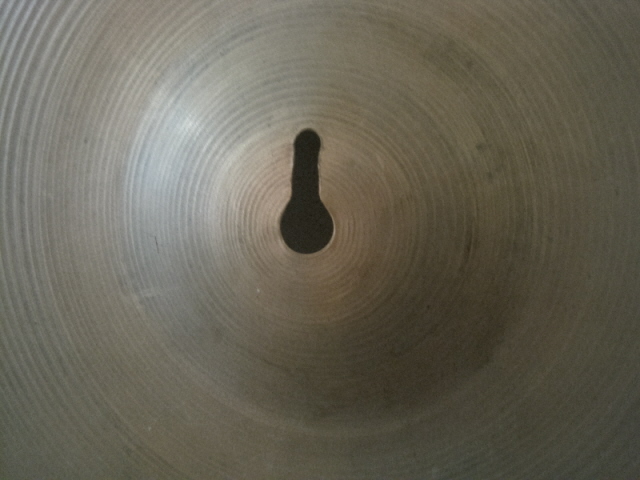I've been having this cymbal for quite a number of years and am considering selling it along with a few others that I have just lying around. It's an 18", 1440g, lots of patina, very dark and dry, from the 60's. My main question is, has anyone ever seen a keyhole of this size in a cymbal before. I was told when I got it that it was most likely man-made. Not really sure what the purpose would be though. And how much will this affect the value of the cymbal.