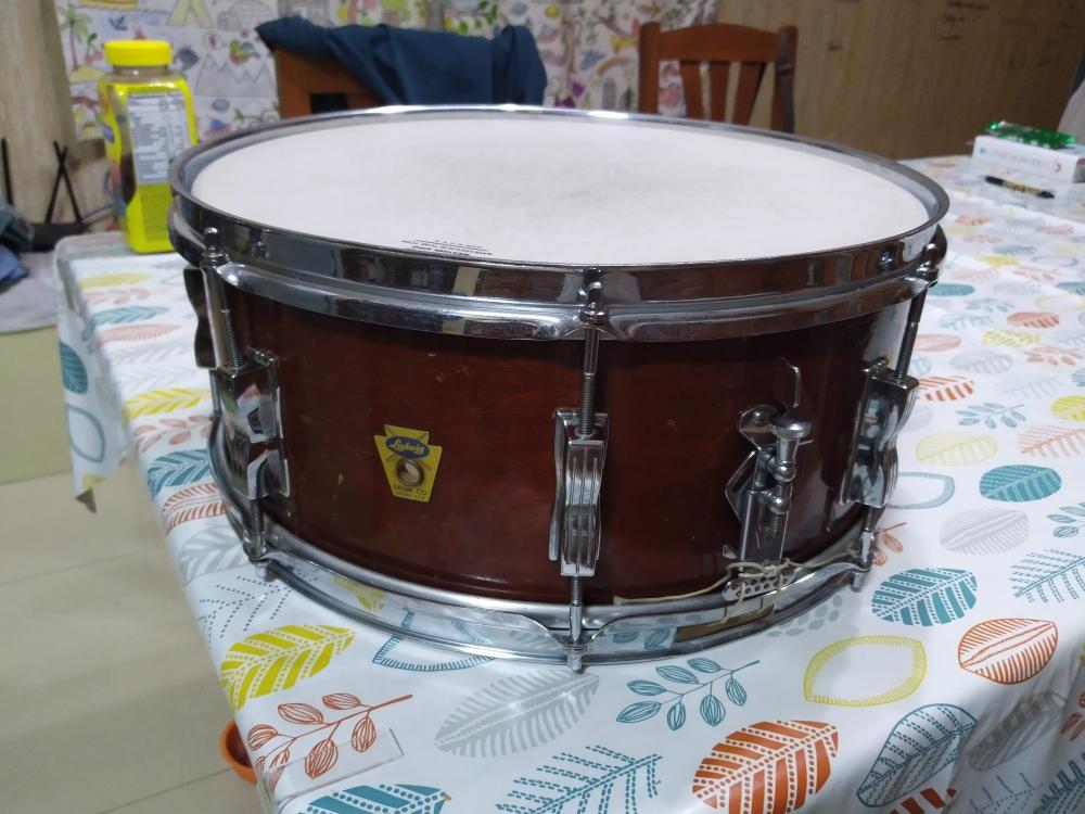 I originally thought it was a Jazz Festival but now that I have measured it, it sems most likely to be an Auditorium from the 1960 catalog (or Contest Model Concert Drum from the 1957 catalog) I guess it falls between the cataogs and they changed the name of the drum.