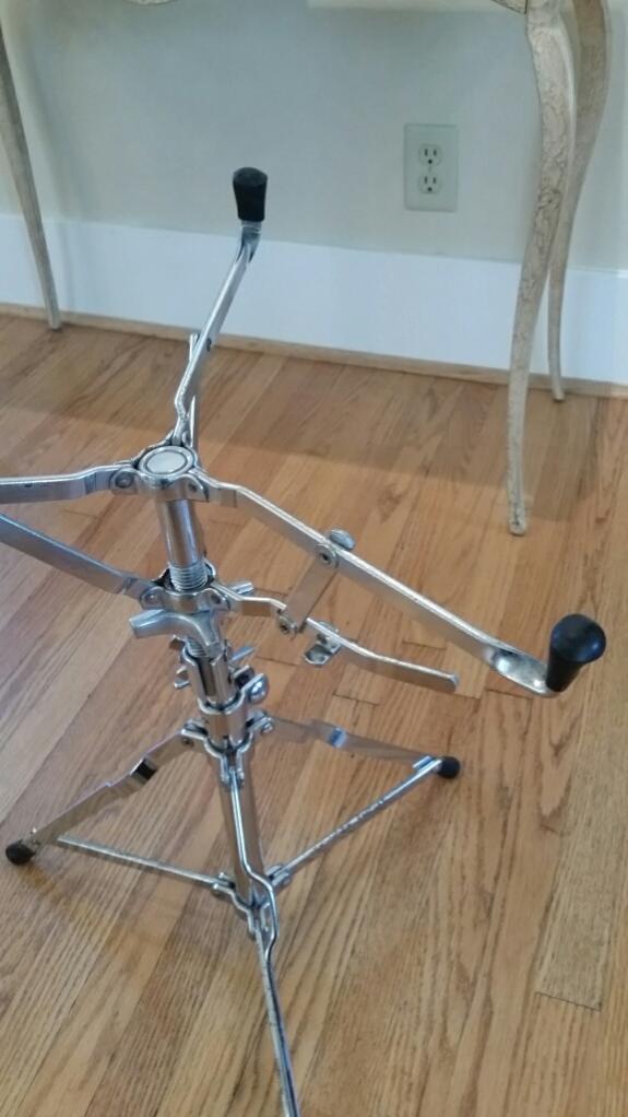 Anyway I got this with the original stand which is also super heavy 7 lbs and has a cool feature in that is has a lever that lowers open one of the arms so you can place or remove the snare and then lock it back up tight.