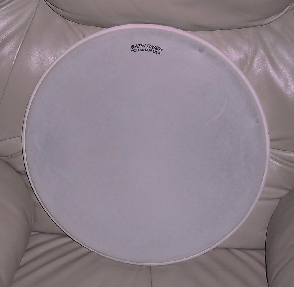 I've got two Aquarian Satin Finish heads that I'm selling. One is an 18" and the other a 15". Both are in really nice condition. The drums they were removed from had REMO Weather King Clear Ambassadors on the bottom sides. I'll also include those, if interested. Have a look a the pics of the Aquarians and drop me a PM if you think they're something that you can use. Any "pinkish hue" in any of the pics is from the camera. I apologize for that.