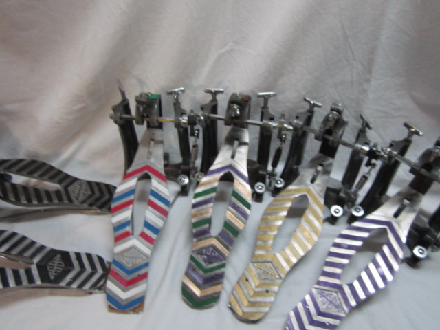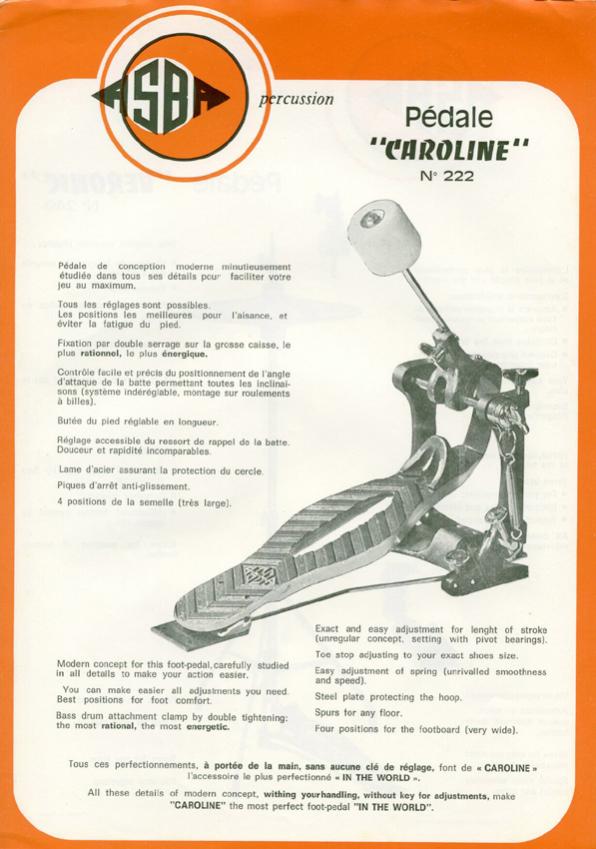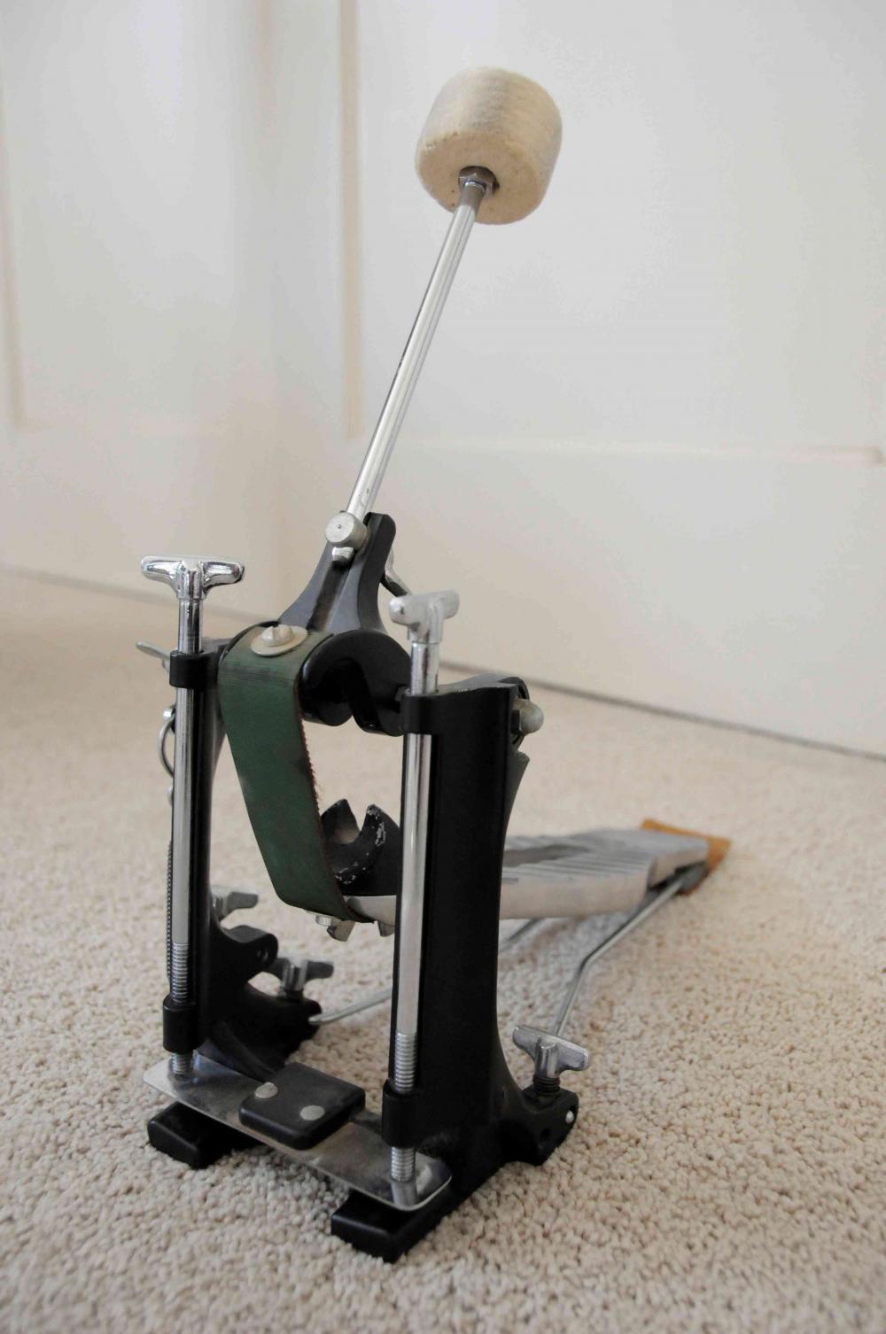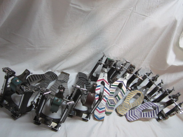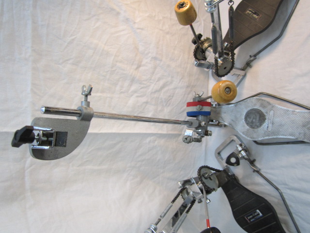I have a pair of ASBA Caroline pedal mated up to a pair of 26" bass drums. I moved from a Speed King to a Ghost, to one Caroline and then a second one for the double bass. I purchased them in the early 80's, several months apart, and they have different finishes on them. Back then these pedals were 'king of the hill' to me due in part to the many features the pedals had over others that were available at the time.