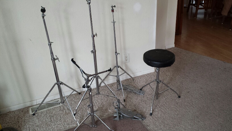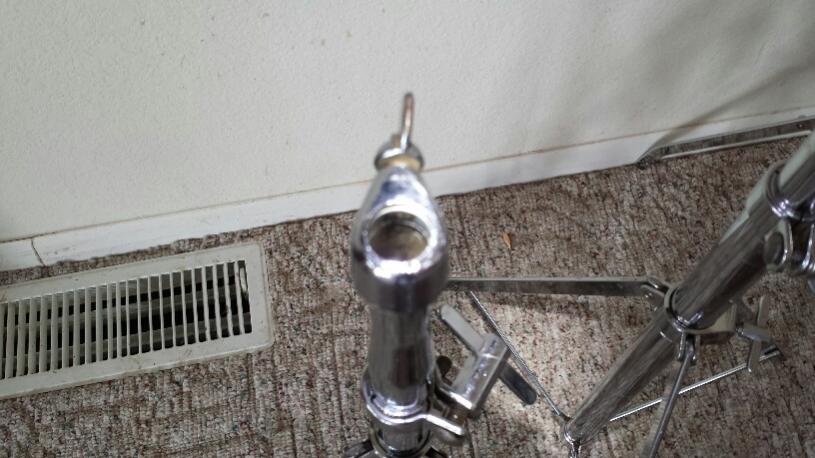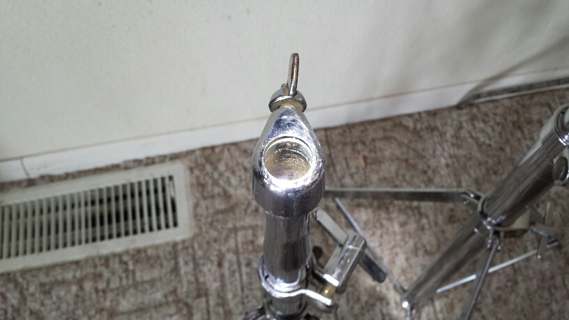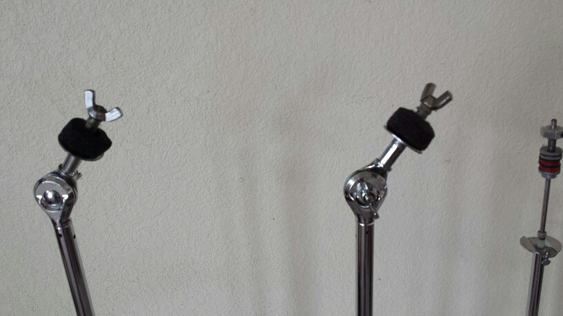The cymbal stands still have the clamp inside the middle tube, it's missing on so many so the top tubes aren't chewed up. The cymbal tilters also have the original large wingnuts, again mostly lost. The wingnuts are all Ludwig, but there's a couple of later ones.